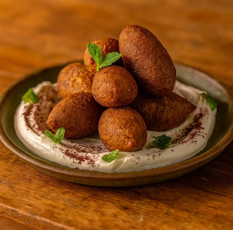Kibbeh is one of the most cherished dishes across Lebanon, Syria, Jordan, and Palestine — a celebration food passed down for generations. Traditionally prepared by hand with skillful mixing of meat, bulgur, and warm spices, kibbeh reflects hospitality, strength, and family connection.